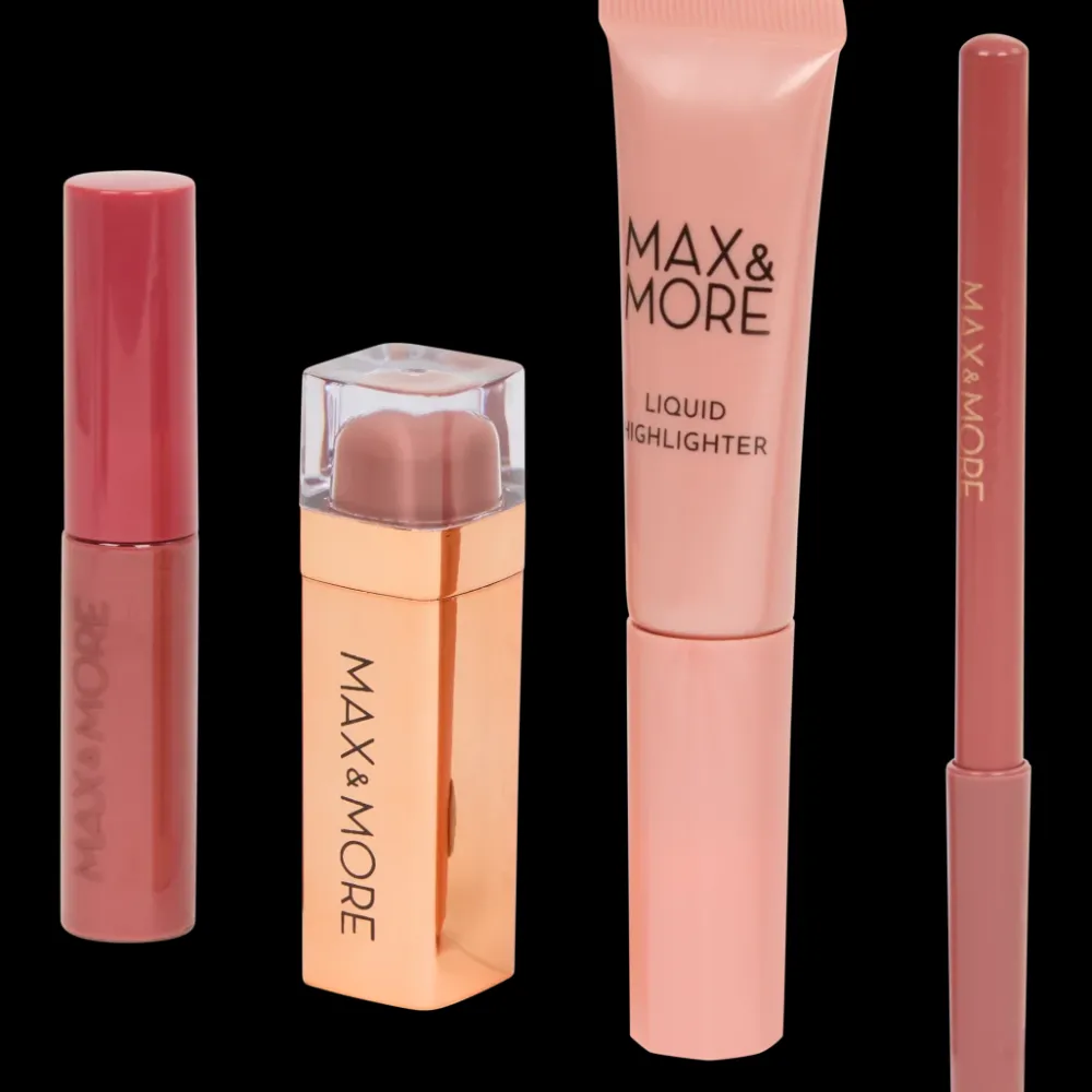 - Bevat een matte lippenstift, vloeibare highlighter, lipgloss en lipliner